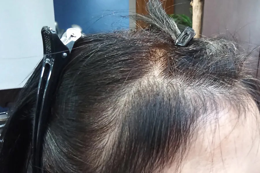 薄毛が気になり出した時期や使用しているシャンプーなど、細かい情報をもとに施術を行っていきます。